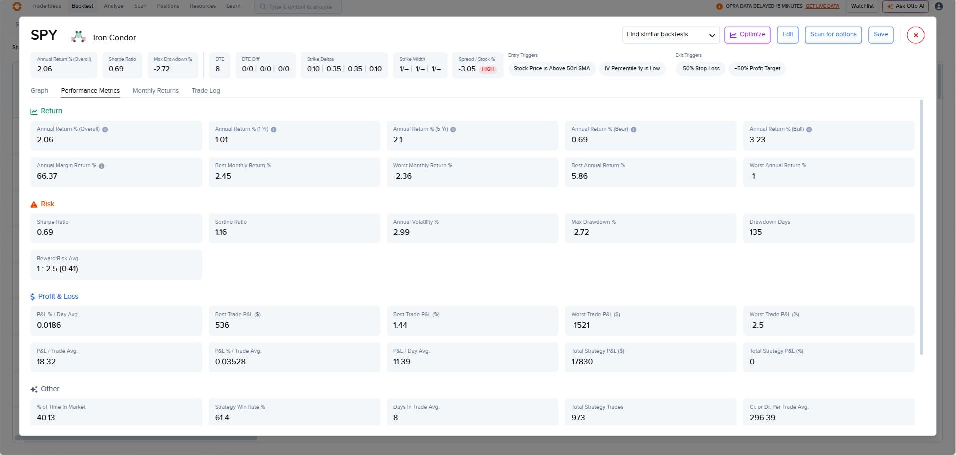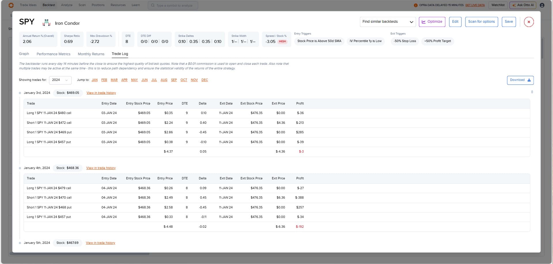 - Optimize it using ORATS proprietary indicators to enhance average daily profit